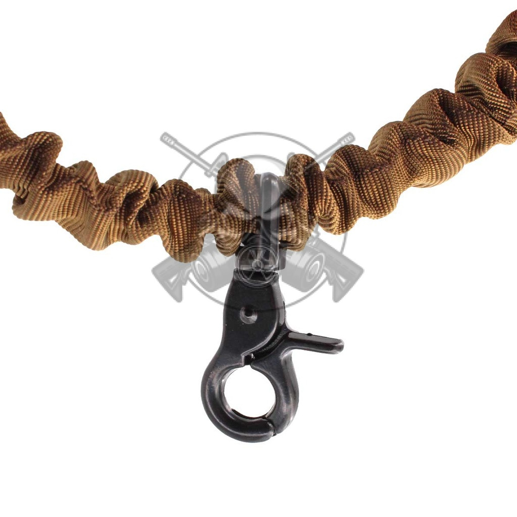 Correa porta fusil para replicas de airsoft, fabricado en nylon reforzado, diseño elástico, mosquetón metálico, ambidiestro.