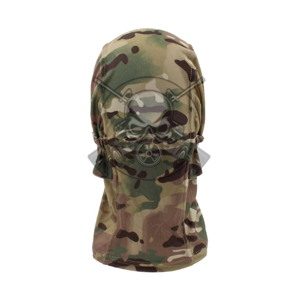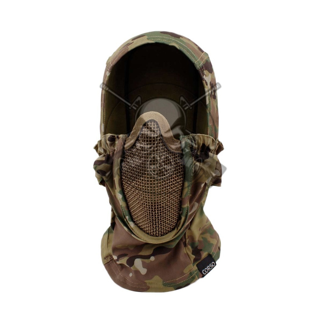 Verdugo táctico de protección multicam, confeccionada principalmente en poliéster elástico de alta calidad, incorpora una rejilla metálica en la zona frontal que cubre boca y nariz, esta pieza no solo protege contra impactos directos, sino que también favorece la ventilación interna, desarrollado para rendir al máximo en condiciones adversas, como partidas prolongadas en climas fríos, su estructura envolvente y anatómica asegura un ajuste ceñido y ergonómico, que se adapta al usuario de forma natural, esta característica lo convierte en una pieza altamente compatible con otros elementos de protección sin interferencias ni puntos de presión molestos.
